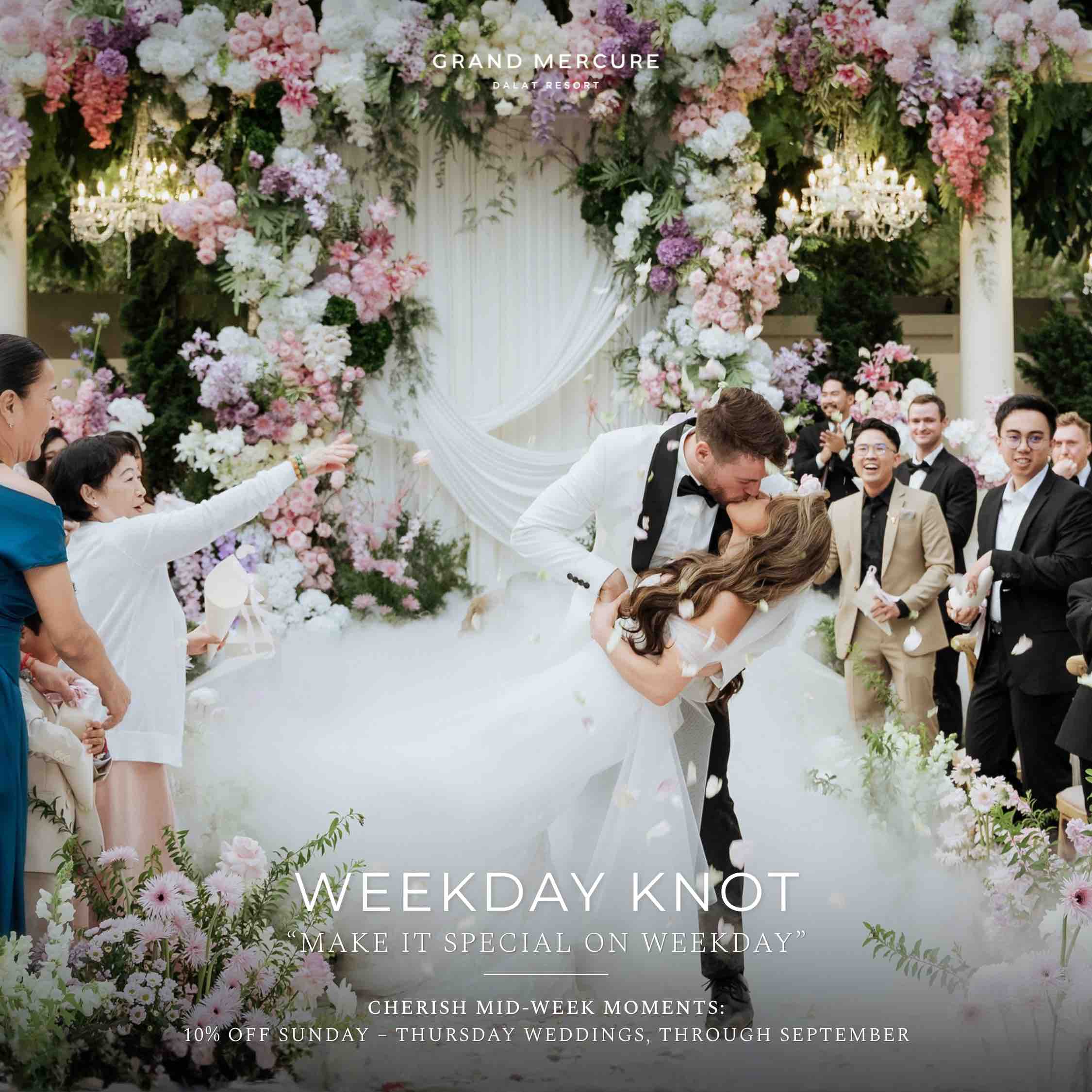 To help you craft a flawless event, we are delighted to present a special offering for our couples. When you choose to host your wedding with us from Sunday to Thursday, between the beautiful months of April and September 2026, you will receive a 10% discount on our bespoke wedding services.