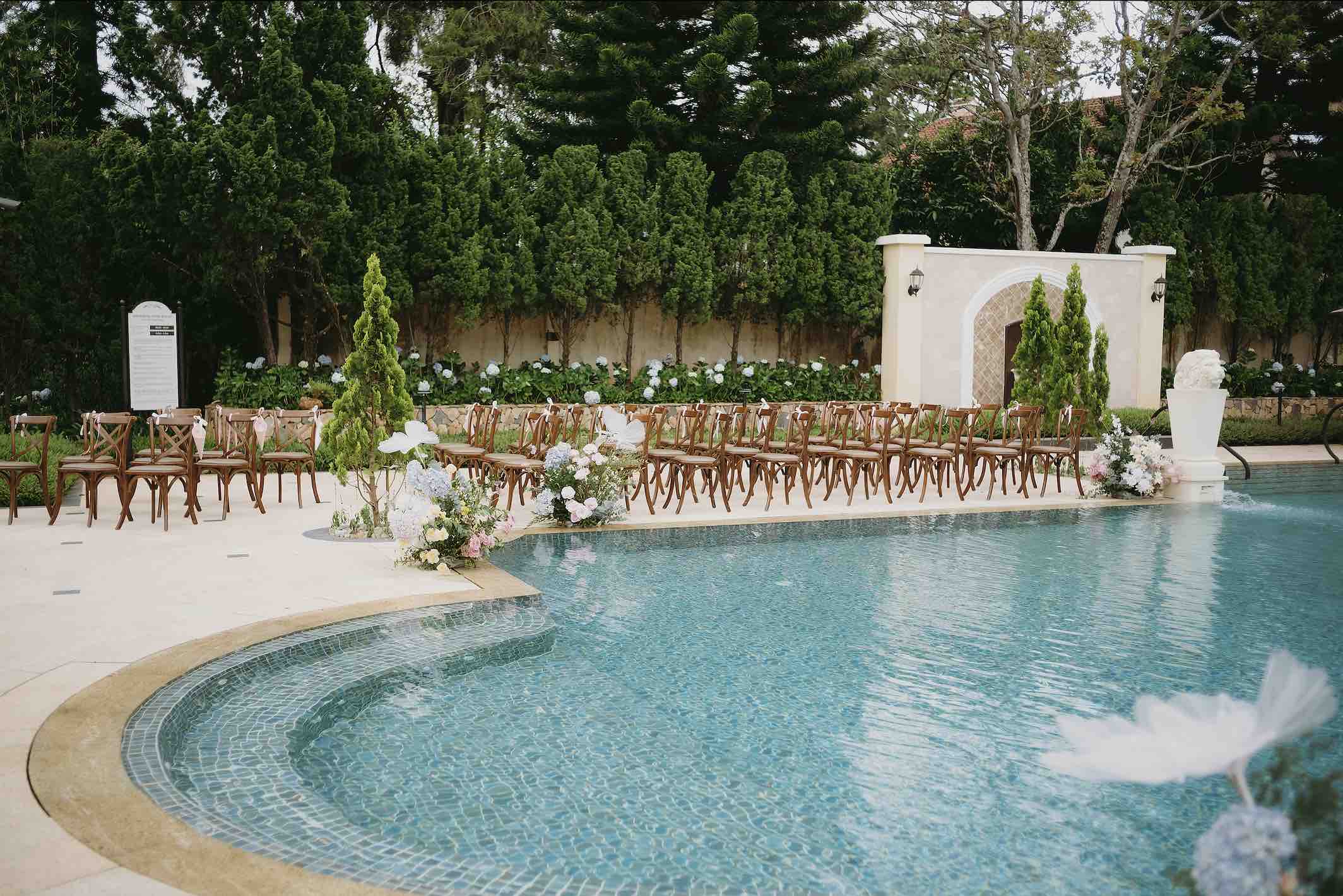 Ẩn mình trong trái tim của Grand Mercure Dalat Resort, không gian tiệc bên hồ bơi mở ra một khung cảnh ngoài trời đầy mê hoặc – nơi mọi sự kiện trở nên thật khó quên. Bao quanh là vườn hồng ngan ngát hương, những triền đồi xanh mướt và làn gió cao nguyên mát lành, địa điểm này khéo léo hòa quyện vẻ đẹp thiên nhiên với nét sang trọng tinh tế.