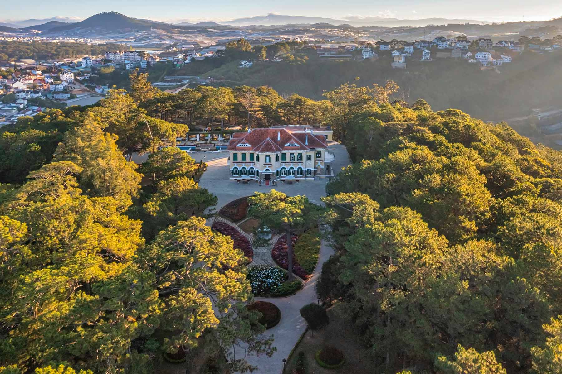 Trải rộng hơn 1.000 mét vuông, dinh sở hữu hai tầng nguy nga với 26 căn phòng được thiết kế tinh xảo. Bên ngoài, khu vườn hoa kiểu châu Âu được chăm sóc tỉ mỉ mời gọi du khách khám phá vẻ đẹp thanh lịch, với những lối đi lát đá duyên dáng càng làm tăng thêm sức hấp dẫn.