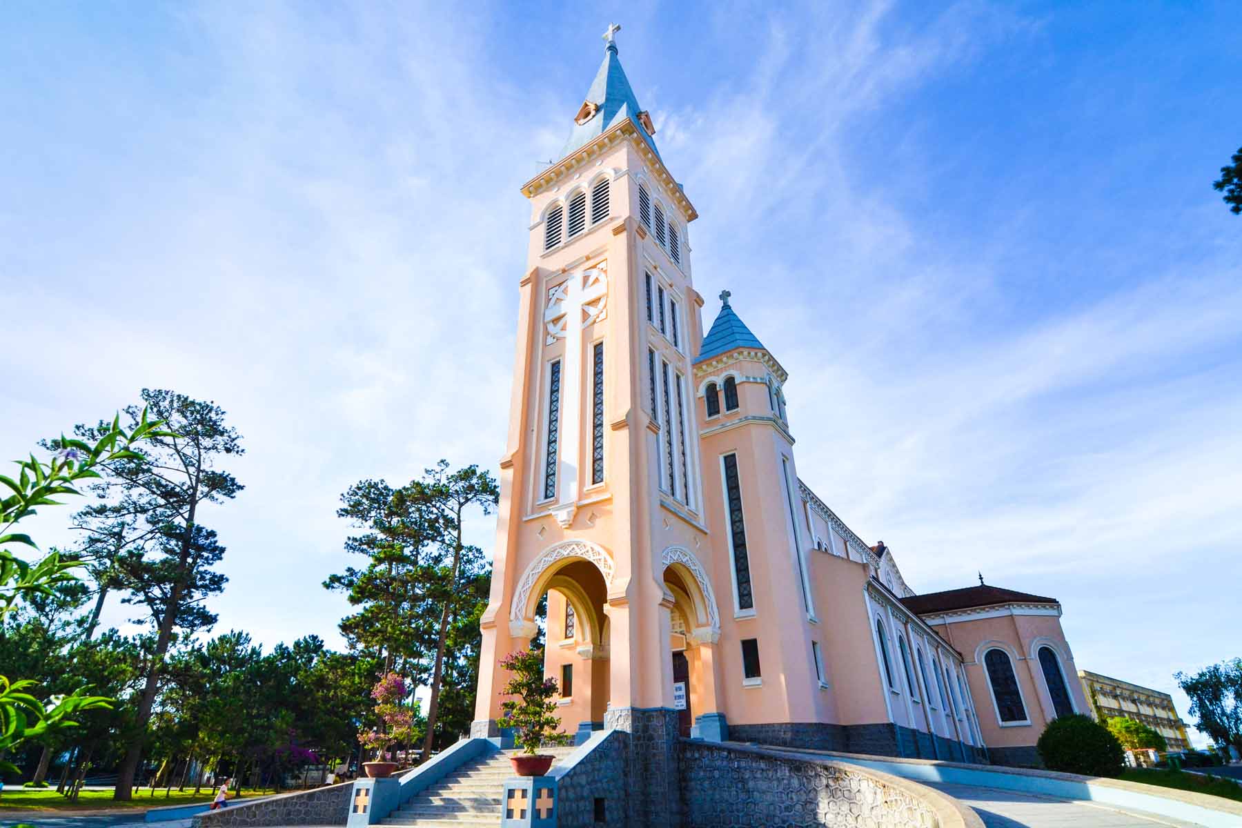 Bên trong, nhà thờ chia thành ba khu vực: hội trường trung tâm và các phòng nhỏ hai bên. Nội thất nổi bật với vòm uốn lượn, cột cổ điển, và 70 bức tranh tuyệt đẹp từ xưởng nghệ thuật Louis Balmet tại Pháp. Chỉ cách Chợ Đà Lạt 1 km, đây là điểm đến không thể bỏ qua cho những ai yêu kiến trúc và muốn khám phá vẻ đẹp đặc trưng của thành phố.